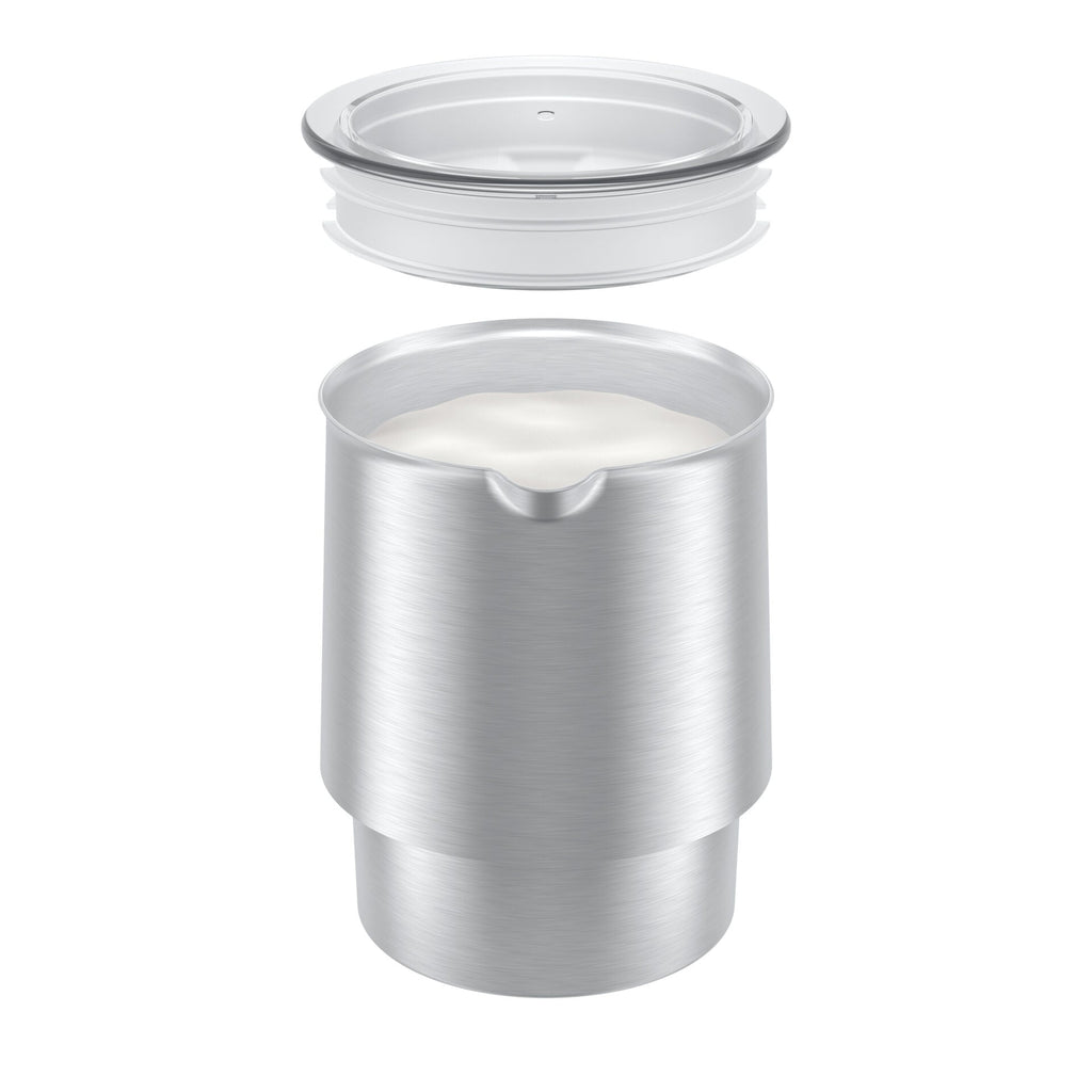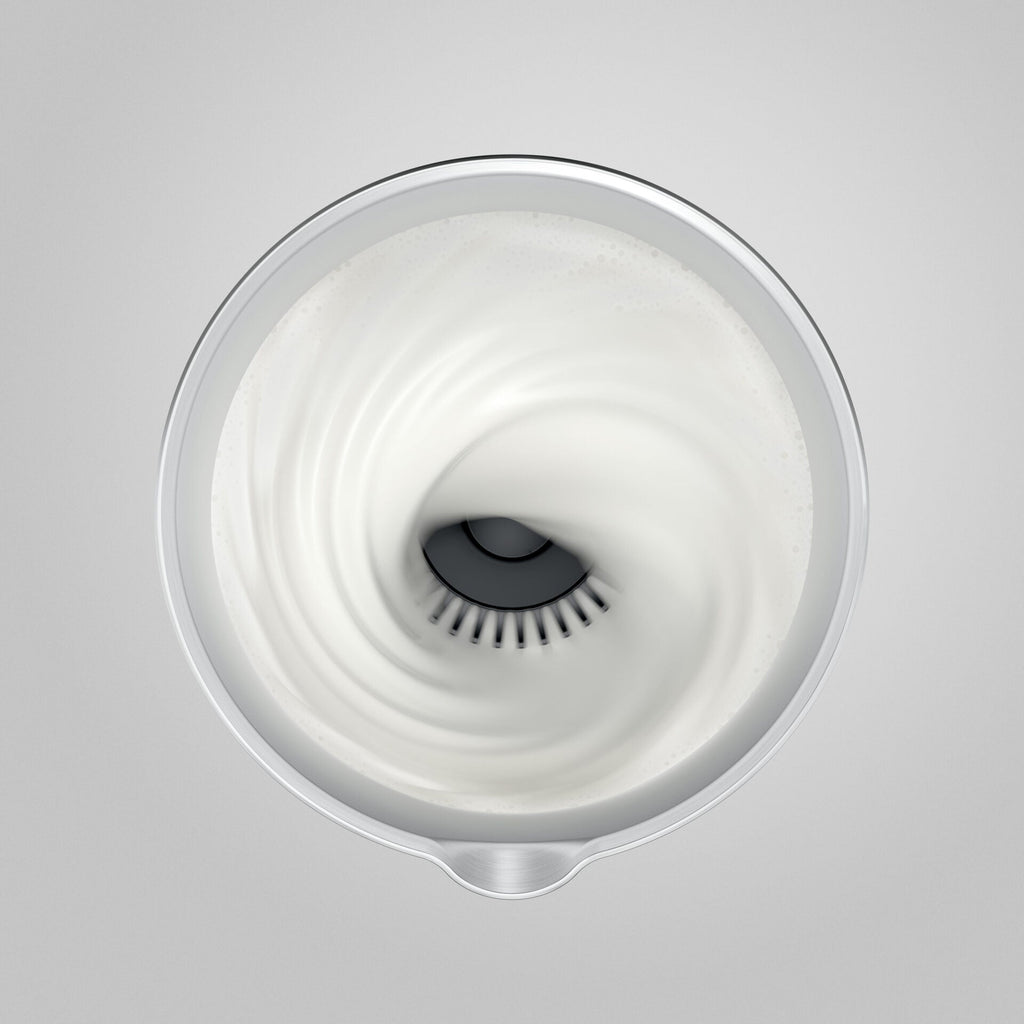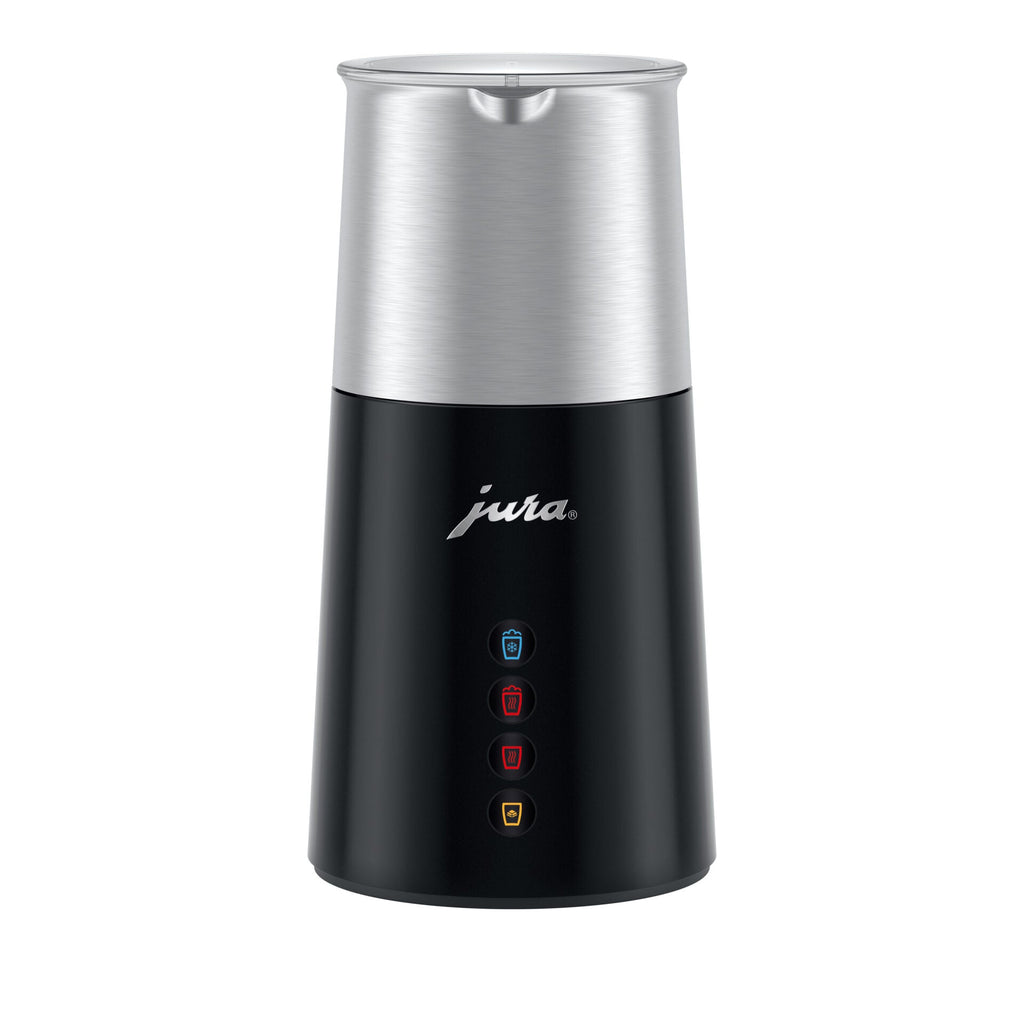 Een bijzonder hoogtepunt is de chocolademelk, die dankzij de krachtige technologie kan worden bereid met stukjes fijne chocoladereep. Het ontwerp van de melkopschuimer maakt indruk met zijn elegante en functionele vormgeving. Met slechts vier symbolen is de bediening eenvoudig en direct. De conische basis zorgt voor een stevige stand en houdt de melkhouder vast, waardoor een stijlvol en harmonieus geheel ontstaat. Met de licht gebogen schenktuit kan de opgeschuimde melk of chocolademelk precies en netjes worden ingeschonken. De melkopschuimer Hot & Cold is de ideale aanvulling op de Pure-Coffee-volautomaten van JURA en zal snel een onmisbare metgezel worden bij de koffiebereiding.