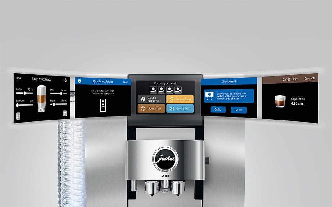 Vers gezette koffie is klaar om van te genieten en het heerlijke koffiearoma vult de ochtend: een gemak dat de Coffee Timer vervult. Ingesteld via de J.O.E.® app, zorgt de Coffee Timer ervoor dat de gewenste koffiespecialiteit de volgende dag vers en op tijd wordt bereid zonder enige tussenkomst. De cafeïneregelaar is een andere baanbrekende technologie voor gepersonaliseerde koffiemomenten. Hij maakt het mogelijk om het cafeïnegehalte in drie stappen aan te passen en zorgt voor de fijne, beslissende balans voor persoonlijk koffiegenot. De ondersteunende functies zijn gebruiksvriendelijk: De Milk Assistant geeft aan wanneer het melksysteem gespoeld moet worden en maakt lactosevrije bereiding na gebruik mogelijk. Met de Quality Assistant is het onderhoud van uw volautomaat handiger dan ooit, terwijl u er lang plezier van hebt.